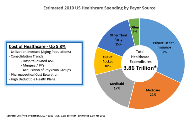 According to the Centers for Medicare & Medicaid Service’s (CMS) recently released National Healthcare Expenditure Projections through 2026, national healthcare spending is projected to grow 5.5% per year on average reaching $5.7 trillion by 2026.